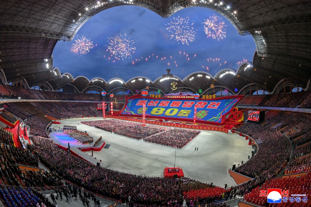 En el Estadio Primero de Mayo, sede de la festividad, reinaba el sentimiento de sincero agradecimiento de todo el pueblo al PTC que en su trayecto glorioso de 80 años situó en la cima de la historia el prestigio, honor y heroísmo del Estado conduciendo a la única senda de la victoria la revolución coreana más ardua y difícil.