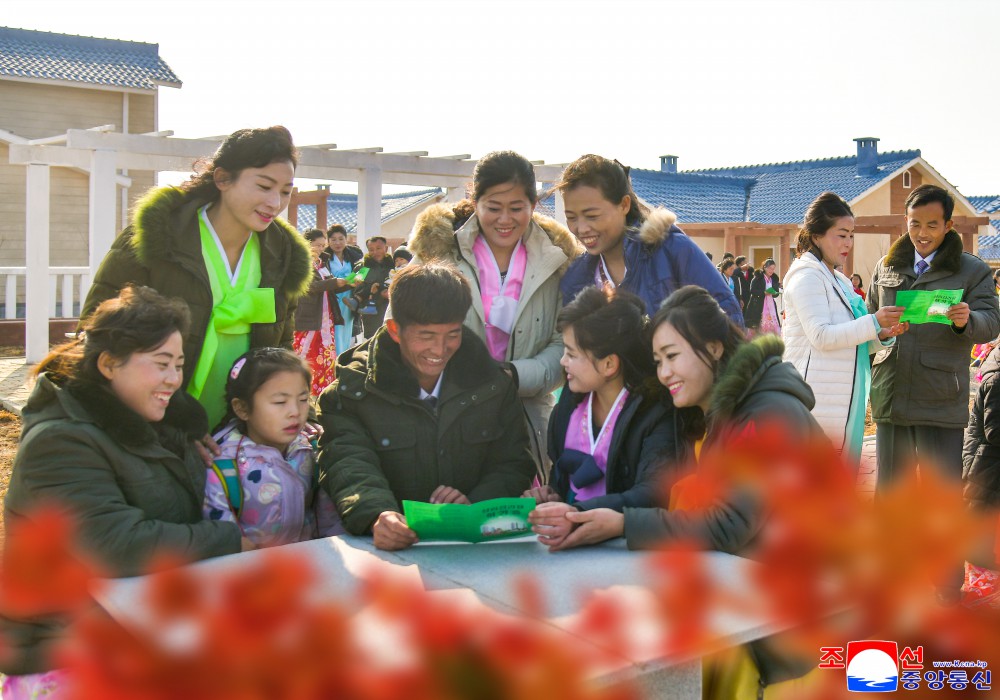 En los actos, los oradores felicitaron a los que se hicieron dueños de nuevas residencias aún cuando a lo largo y ancho del país se desborda la alegría del pueblo por el levantamiento de las cristalizaciones maravillosas de la civilización rural de particularidad coreana.