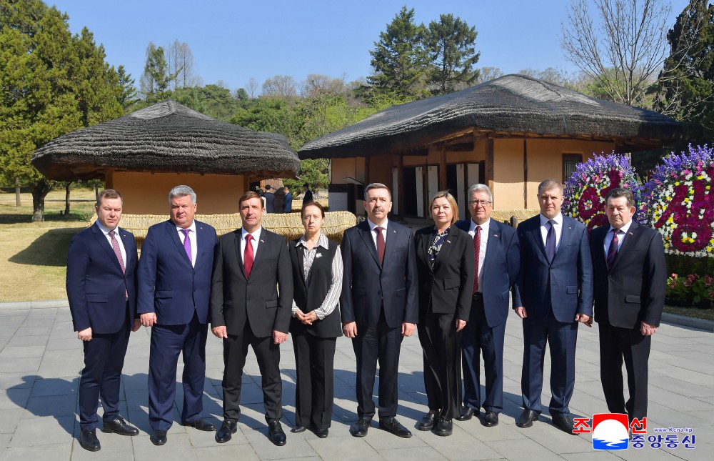 En el patio de la choza natal, los huéspedes rusos pasaron revista a los vestigios conservados allí escuchando las explicaciones sobre la vida revolucionaria del gran Líder quien dedicó todo lo suyo para la prosperidad de la patria, la felicidad del pueblo y el cumplimiento de la causa de independencia de la humanidad.